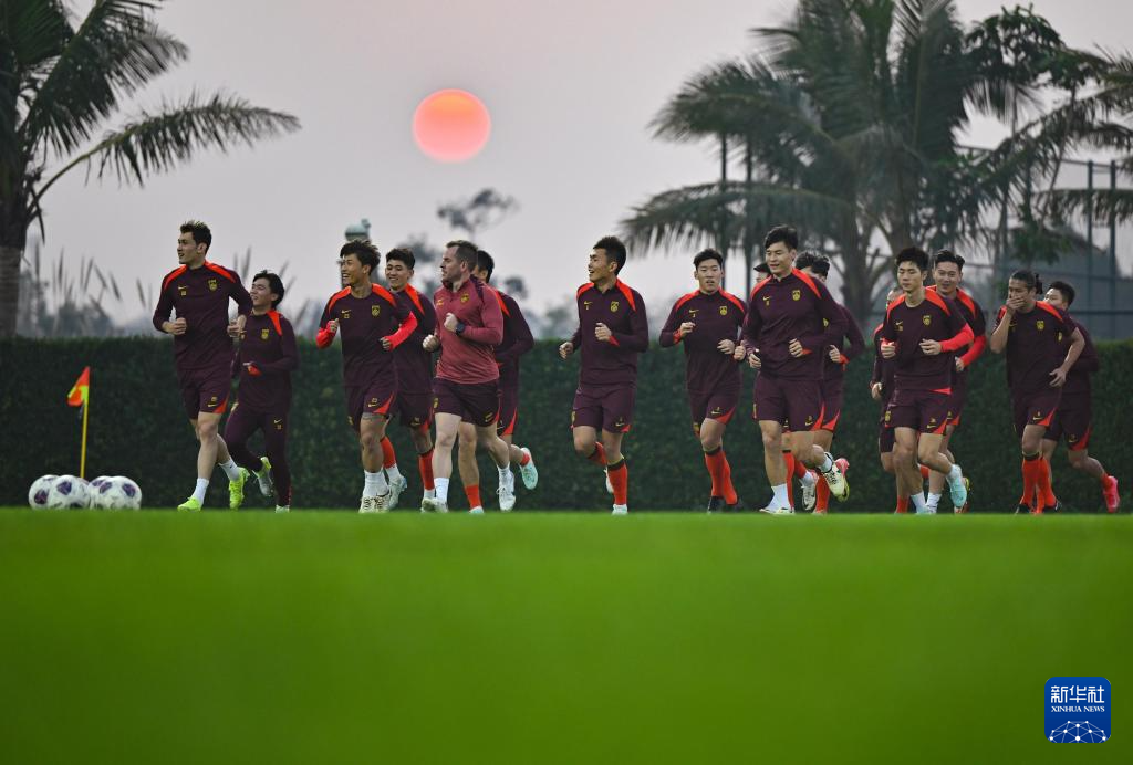 1月9日,中國隊球員在訓練中。當日,中國國家男子足球隊在海南??诩?,備戰將在3月進行的2026美加墨世界杯亞洲區預選賽18強賽。新華社記者 郭程 攝