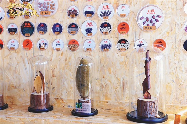 “這個胖墩墩的家伙就是世界上最大的種子,海椰子!”當天,海南袁野聯合設計顧問有限公司主理人、九所村和美鄉村職業經理人李娟帶領參觀者走進種子博物館,向大家介紹其中一顆體積明顯大于甚至數倍于其他展出品的種子。