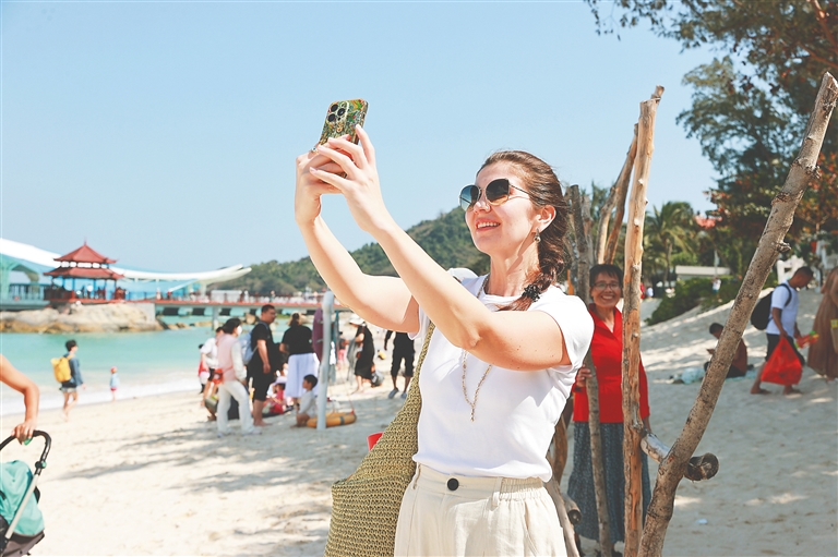春節臨近,游客來到三亞度假,盡享暖冬陽光。通訊員 袁永東 攝