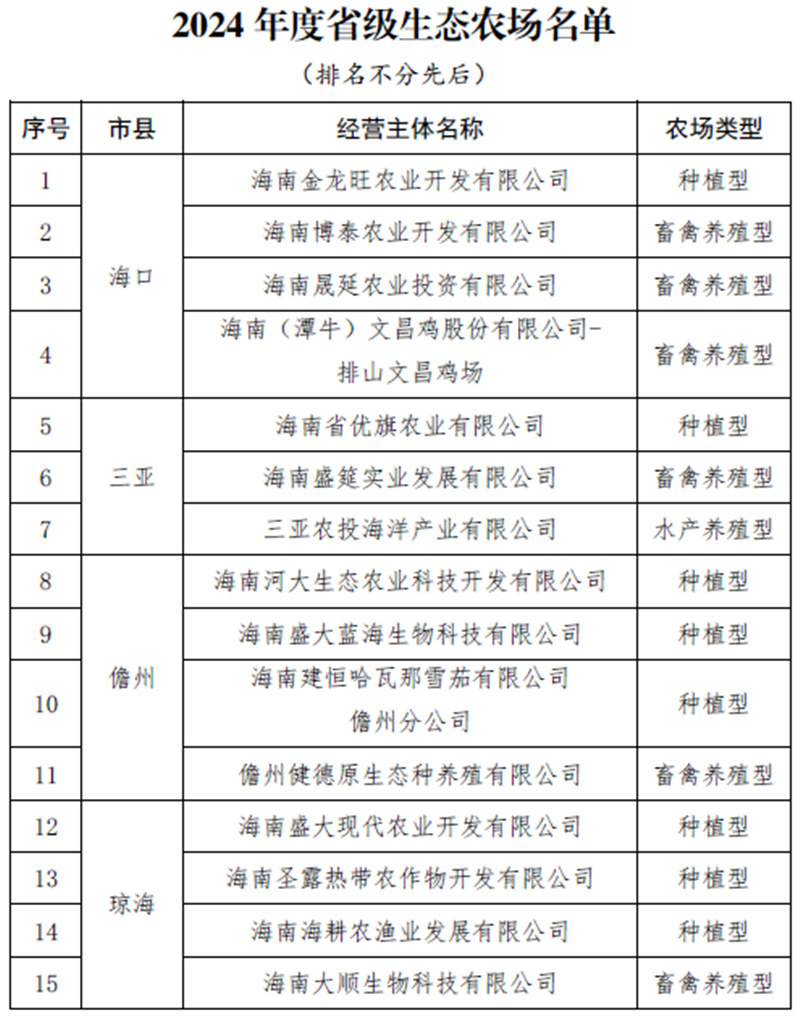 近日,海南省農業農村廳發布《海南省農業農村廳關于公布2024年度省級生態農場評價結果的通知》,決定授予53家主體省級生態農場稱號。其中,瓊中黎族苗族自治縣8家主體上榜。