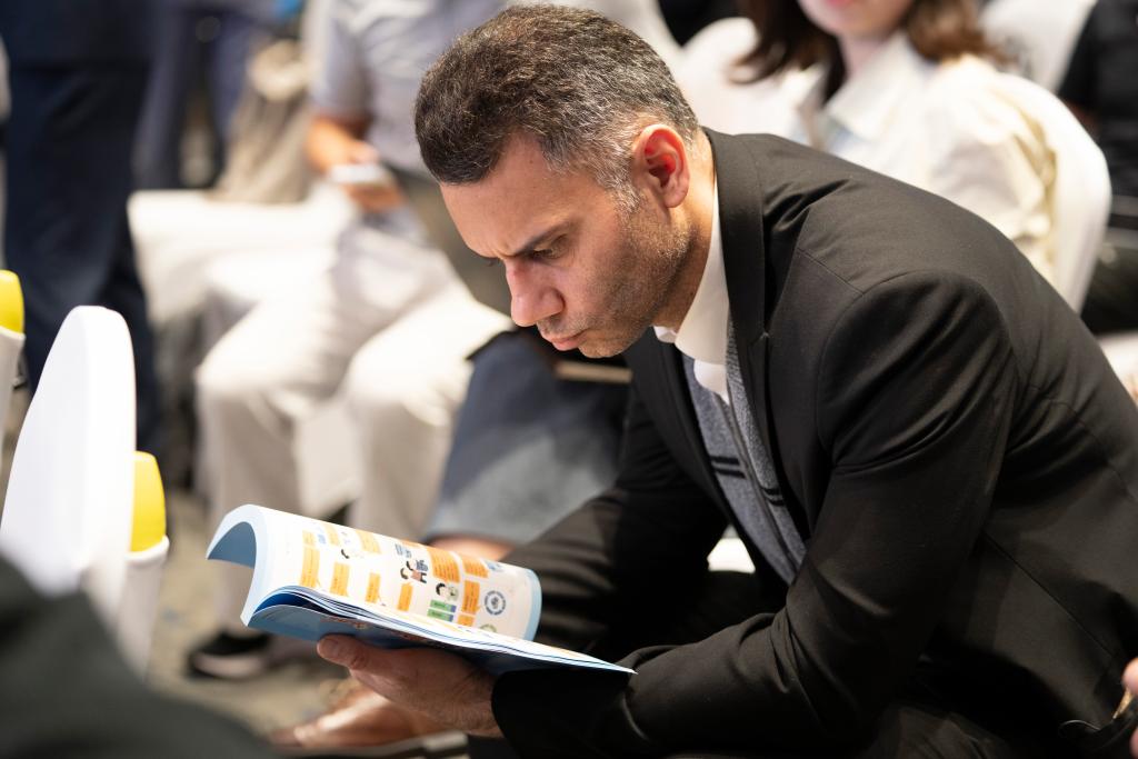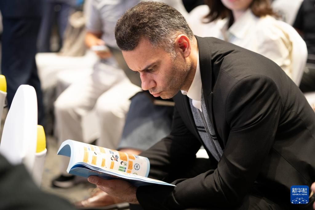 3月25日,外國參會嘉賓在閱覽漫畫冊。新華社發
