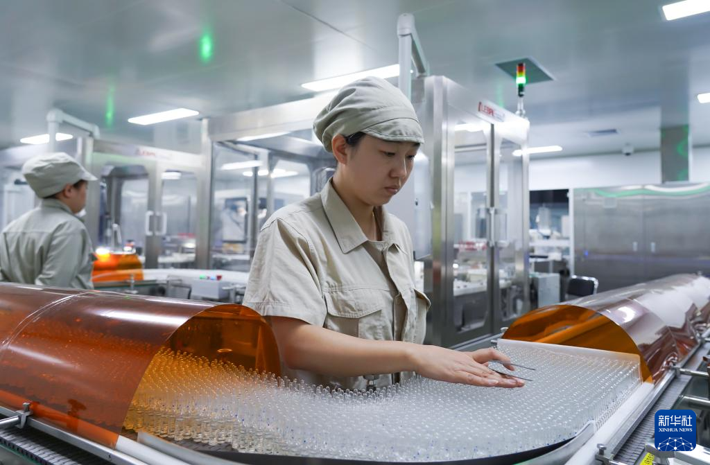 遼寧方大集團東北制藥智能化生產車間,企業員工在生產藥品。新華社記者 楊青 攝