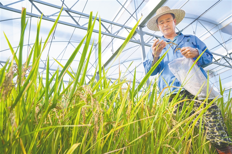 “每株都要選一個穗子,不能落了!”4月7日,在三亞市崖州區的南繁試驗田中,約1萬株稻穗沉甸甸地垂向地面。海南農樂南繁科技有限公司育種員欽星彎著腰穿梭其間,不時囑咐一旁的同事仔細挑選稻谷?!斑@些可是太空水稻種子‘上天入地’后繁育的第一代種子,每一粒都有可能培育出更加優良的品種?!?/p>