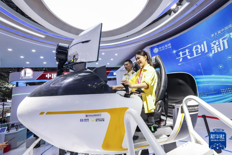 中信海洋直升機股份有限公司展出了新款電動垂直起降飛行器的全功能飛行模擬器,不僅滿足專業駕駛人員的全狀態仿真培訓要求,也能讓普通消費者體驗飛躍城市的新奇。
