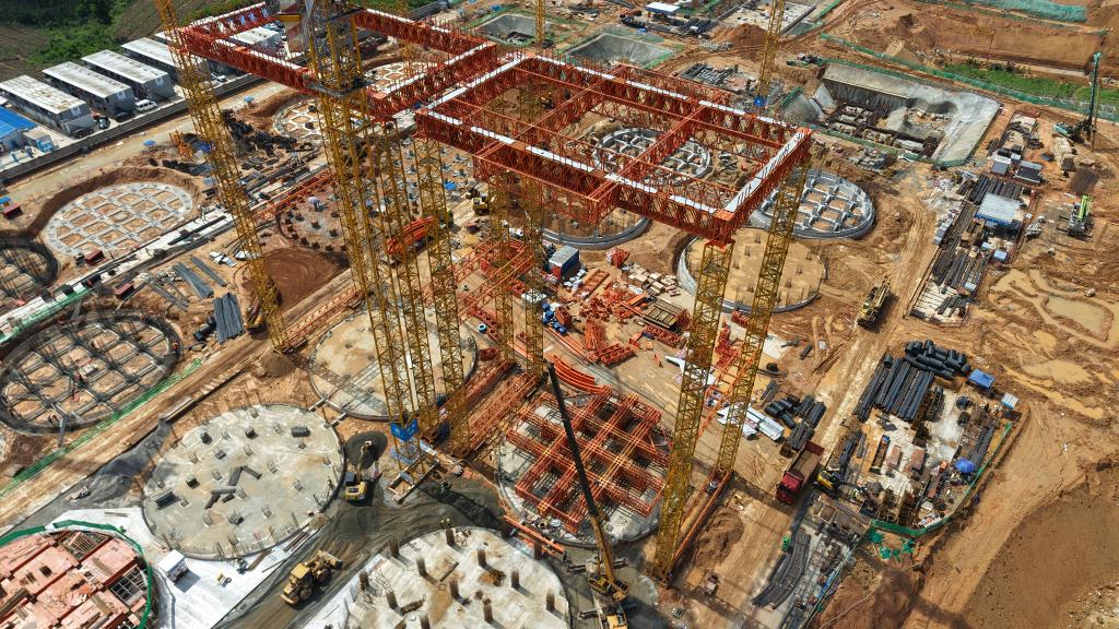 4月30日,“筒倉機”在海南瓊中拼裝完成。(中建三局供圖)