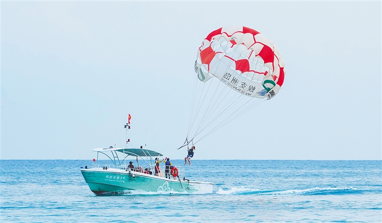 在萬寧日月灣,沖浪愛好者迎著翻滾的浪花馳騁,在碧海藍天間感受“踏浪飛馳”的激情;在陵水,游客前往疍家漁排,探尋水上人家的獨特魅力,品嘗當地鮮活美食;瓊海則以潭門漁港為核心,打造漁耕文化體驗等沉浸式文旅場景,讓來客深度感受千年漁港的人文底蘊與漁家風情……從深度體驗到趣味互動,多元創新的海洋旅游產品,吸引八方游客奔赴瓊島,暢享“藍色假期”。(海南日報全媒體記者 李夢楠)