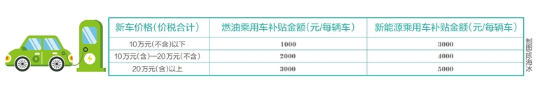 ??诖舜纹囍脫Q更新補貼根據購買新車價格(價稅合計)給予相應的一次性定額補貼。新車價格10萬元(不含)以下,燃油乘用車補貼1000元/輛,新能源乘用車補貼3000元/輛;新車價格為10萬元(含)—20萬元(不含),燃油乘用車補貼2000元/輛,新能源乘用車補貼4000元/輛;新車價格為20萬元(含)以上,燃油乘用車補貼3000元/輛,新能源乘用車補貼5000元/輛。資金有限先到先得。