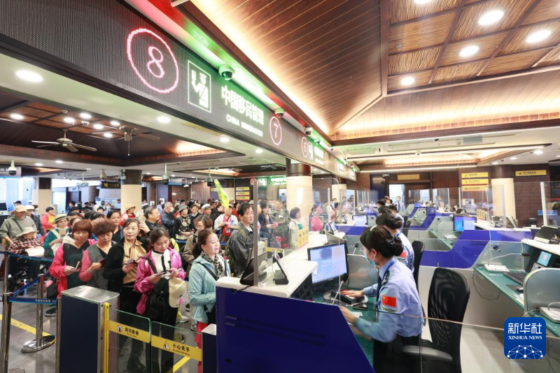??诔鋈刖尺叿罊z查總站三亞邊檢站移民管理警察在為“鼓浪嶼”號郵輪旅客辦理通關手續(1月3日攝)。當日,“鼓浪嶼”號郵輪搭載456名旅客??咳齺嗻P凰島國際郵輪港,這是三亞口岸2025年首艘入境的國際郵輪。