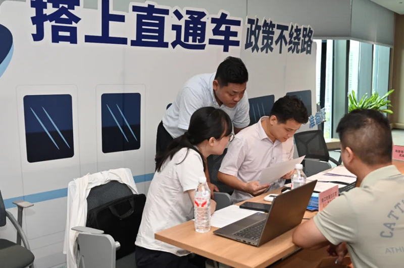 活動現場還開設“政策申辦直通車”速辦臺,由美蘭區營商環境建設局牽頭,聯合多部門組成的服務專班,現場為企業量身定制政策申報、人才補貼等“一對一”高效服務。短短10分鐘就有企業現場辦理商業、公益性宣傳活動臨時占用道路或公共場所搭建臨時構筑物或其他設施許可(告知承諾制),企業代表紛紛為貼心服務點贊。