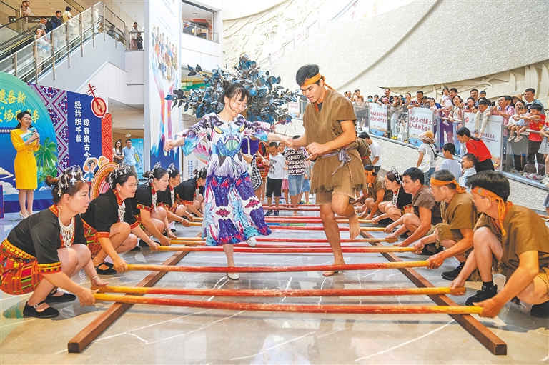 7月12日,黎族打柴舞在海南省非物質文化遺產展示中心上演。本組圖片均由海南日報全媒體記者 李天平 攝