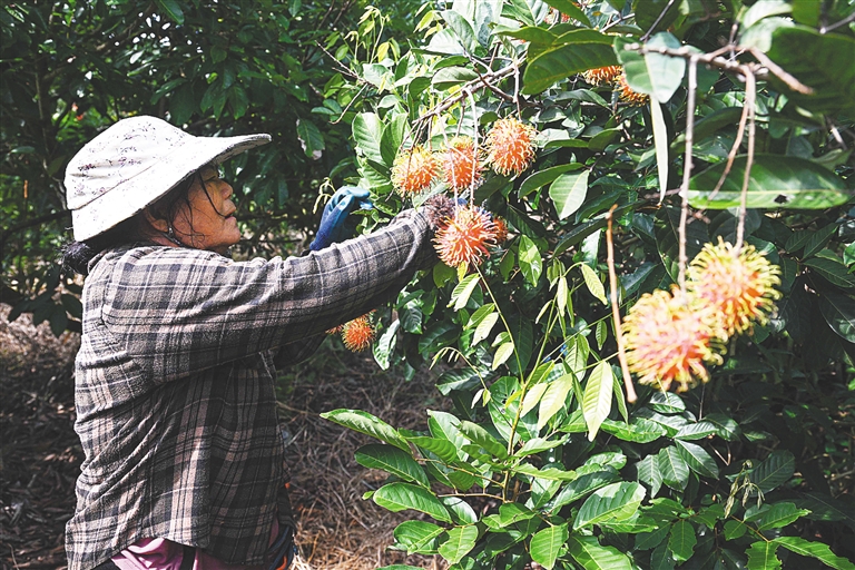 當前,保亭正在推動紅毛丹產業從賣原料向賣加工產品、賣“品牌”轉變,打造紅毛丹文化豐收季活動、開發觀光休閑游、度假養生游、采摘體驗游等農旅融合體驗業態,讓紅毛丹從“土特產”轉變為“潮玩IP”,一二三產持續融合發展,讓群眾富了口袋,“甜”了生活。