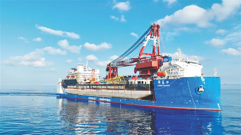 作為此次政策落地的“首航者”,“祥泰口”輪為無限航區自航半潛船,總長231.8米、總噸4.71萬,配備先進雙電力推進系統,主機功率達1.2萬千瓦,可運載超大重量、超大尺寸的海上大型平臺、工程結構物、模塊化裝備及各類船舶,是深海工程與遠洋運輸領域的關鍵裝備。