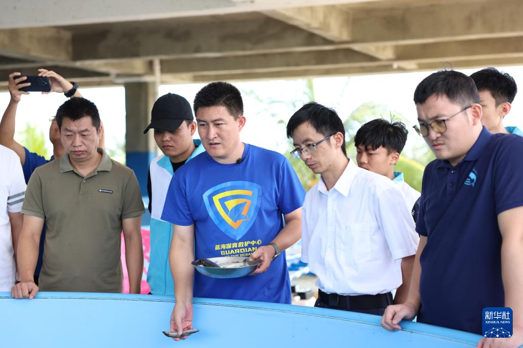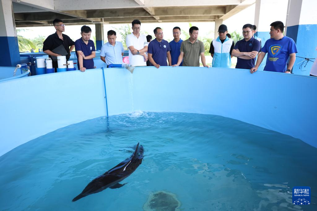9月8日,專家組在海南陵水的救助池前評估海豚“萬萬”的情況。新華社記者 張麗蕓 攝